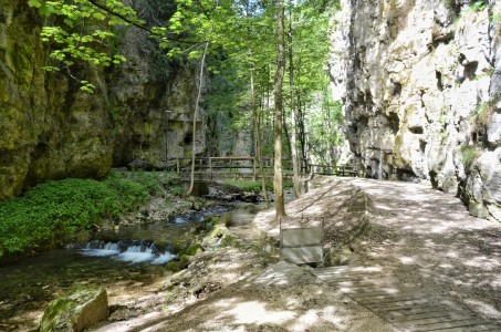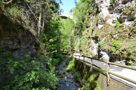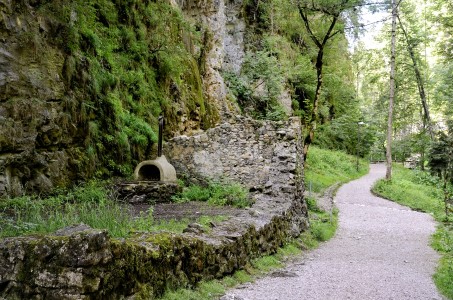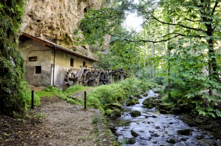 Lungo il tragitto si attraversano suggestivi ponticelli, si incontra un altro mulino e ci si addentra tra le pareti rocciose della forra su una passerella fino alla cascata del lago. Infine salendo una scaletta metallica si raggiunge il Lago Smeraldo.